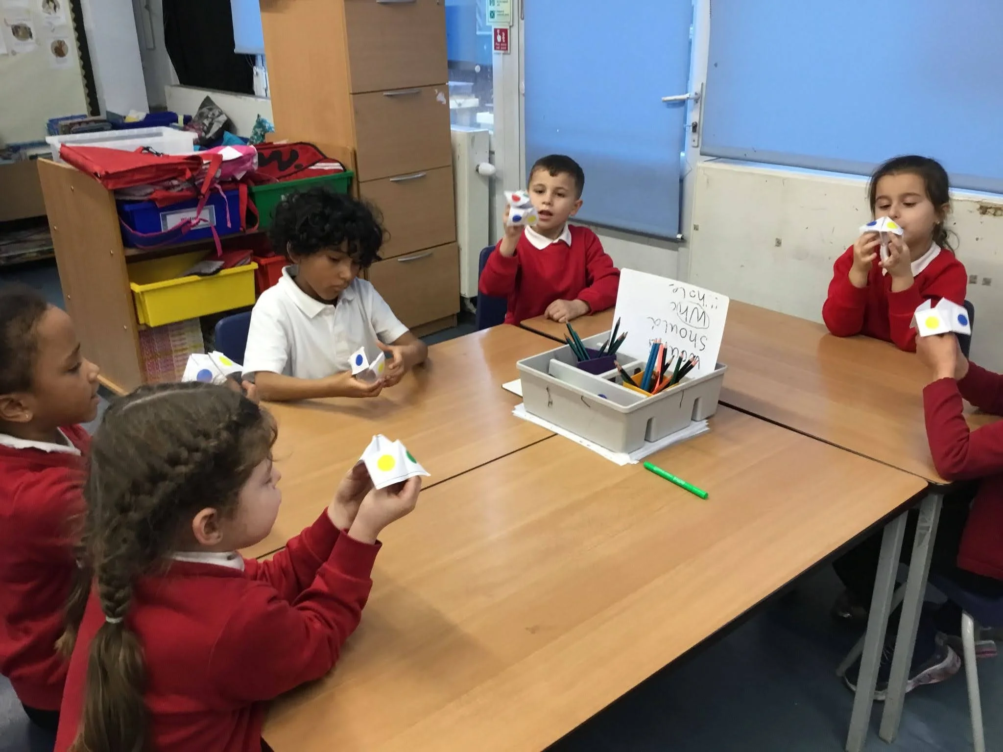 Year 1 have been focusing on relationships where they made friendship chatterboxes. Each chatterbox had sentence starters and questions about their friendships. Children also danced and sang to a friendship song, listened to a story, role-played and remembered how Jesus behaved as a friend making links to RE. They also 'baked' a friendship cupcake with the qualities of they would like to see in their friend.