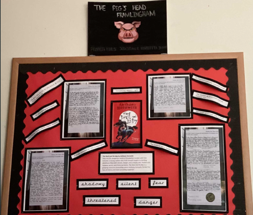 In Year 5 and 6 children are using a range of vocabulary in their writing. Through the Think Alouds that are happening children have broaden their vocabulary knowledge. This picture celebrates the use of a variety of vocabulary, which children have discovered in the texts they are reading and used in the writing they are producing.