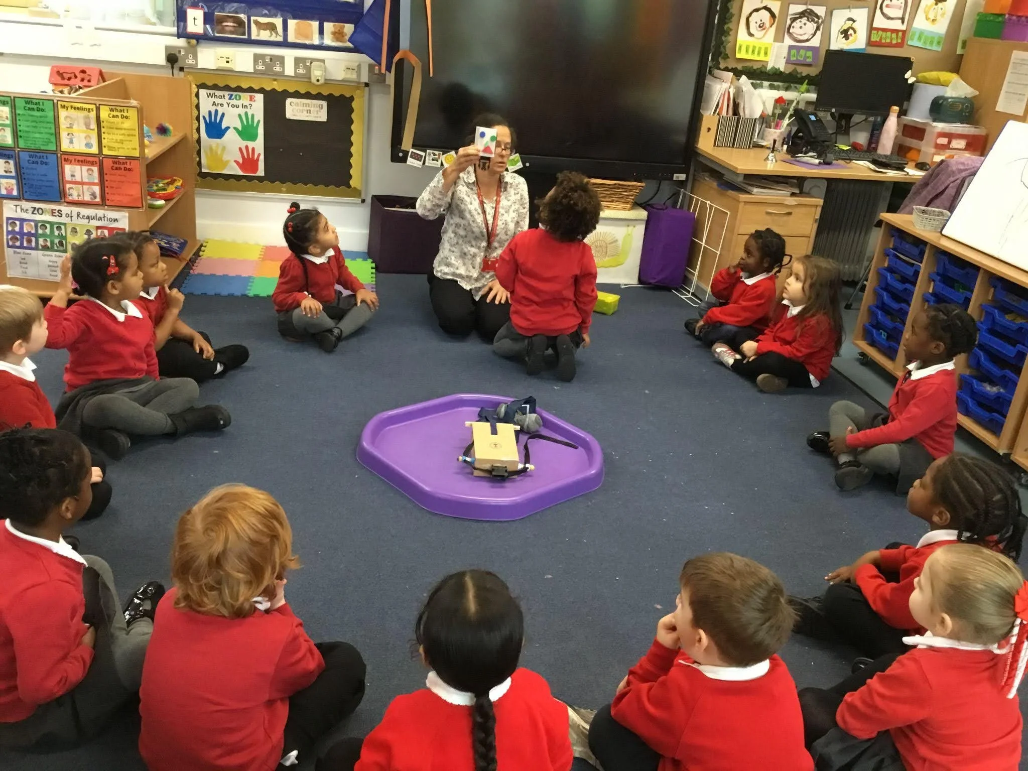 In the early years, the nursery class is exploring the human body. They are engaging in singing songs, dancing, creating skeleton models, and using language to identify various body parts. In this photo, the children are assembling a 'Robot.' We used language to identify the different ways of attaching the body parts, such as ‘Can you clip the neck and the shoulders together? Or ‘How can we attach the legs to the body?’
