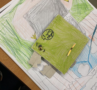 The children in year 4 are making snapping crocodiles to learn how levers work. The project uses levers and linkages to demonstrate how simple machines generate movement. The split pins act as pivot points for the cardboard components, allowing students to see how moving one handle causes the crocodile to "snap." The children understand how levers change the direction and magnitude of force. The children will be able to apply this understanding in the design and making of Christmas cards.